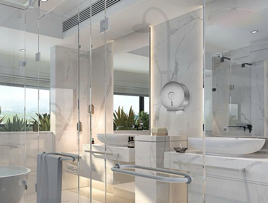 Sản phẩm hộp đựng giấy cuộn lớn được thiết kế kiểu cuộn tròn, inox có độ bóng cao mang đến vẻ đẹp tinh tế và sang trọng cho phòng tắm của bạn.
